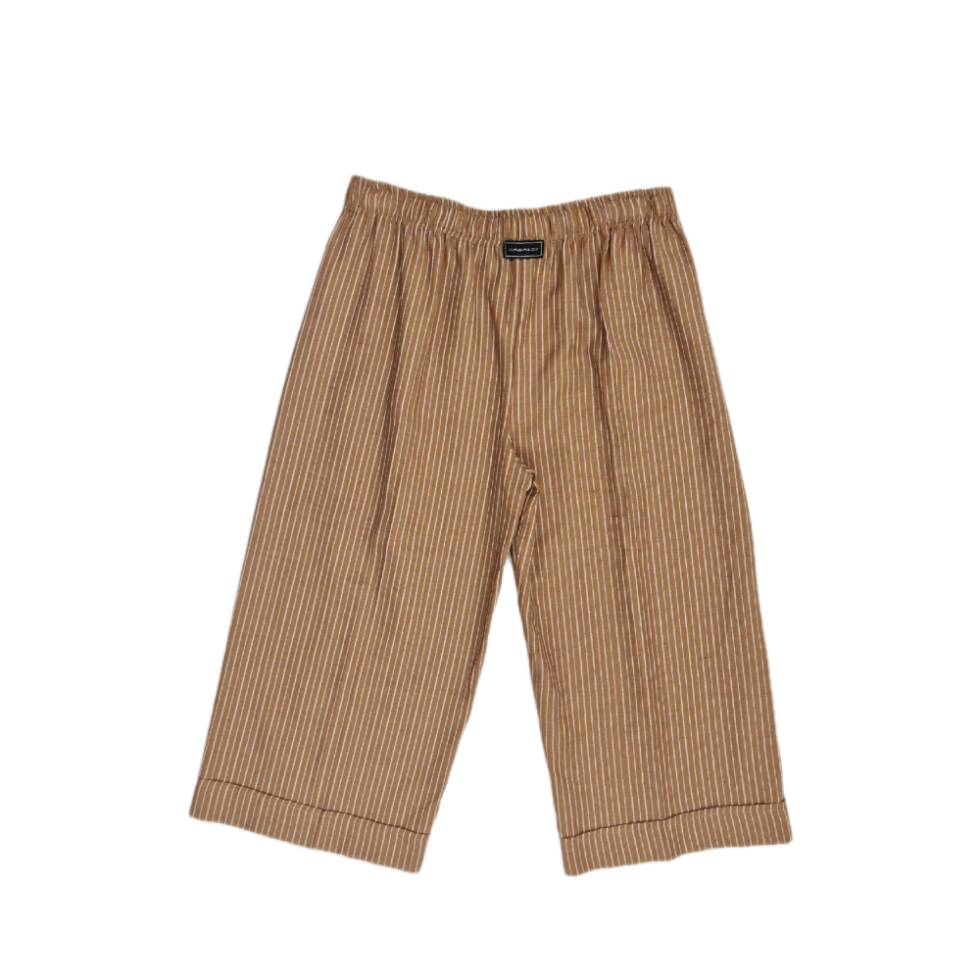 Scopri l’equilibrio perfetto tra relax e stile. I nostri pantaloni a righe sono progettati per chi non vuole scendere a compromessi tra eleganza e libertà di movimento. Il design a gamba larga e la texture naturale creano un look senza tempo, ispirato alle estati mediterranee.